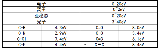 等離子體中的粒子將自身的能量傳遞給固體表面,誘發(fā)表面的原子或分子生成新的化學鍵,或者使原來的化學鍵斷裂;典型的鍵能只有幾個電子伏特(eV)。
