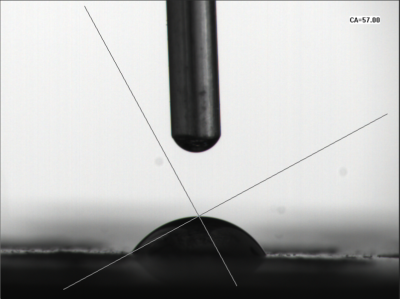 圖3.等離子清洗后水滴角為56度