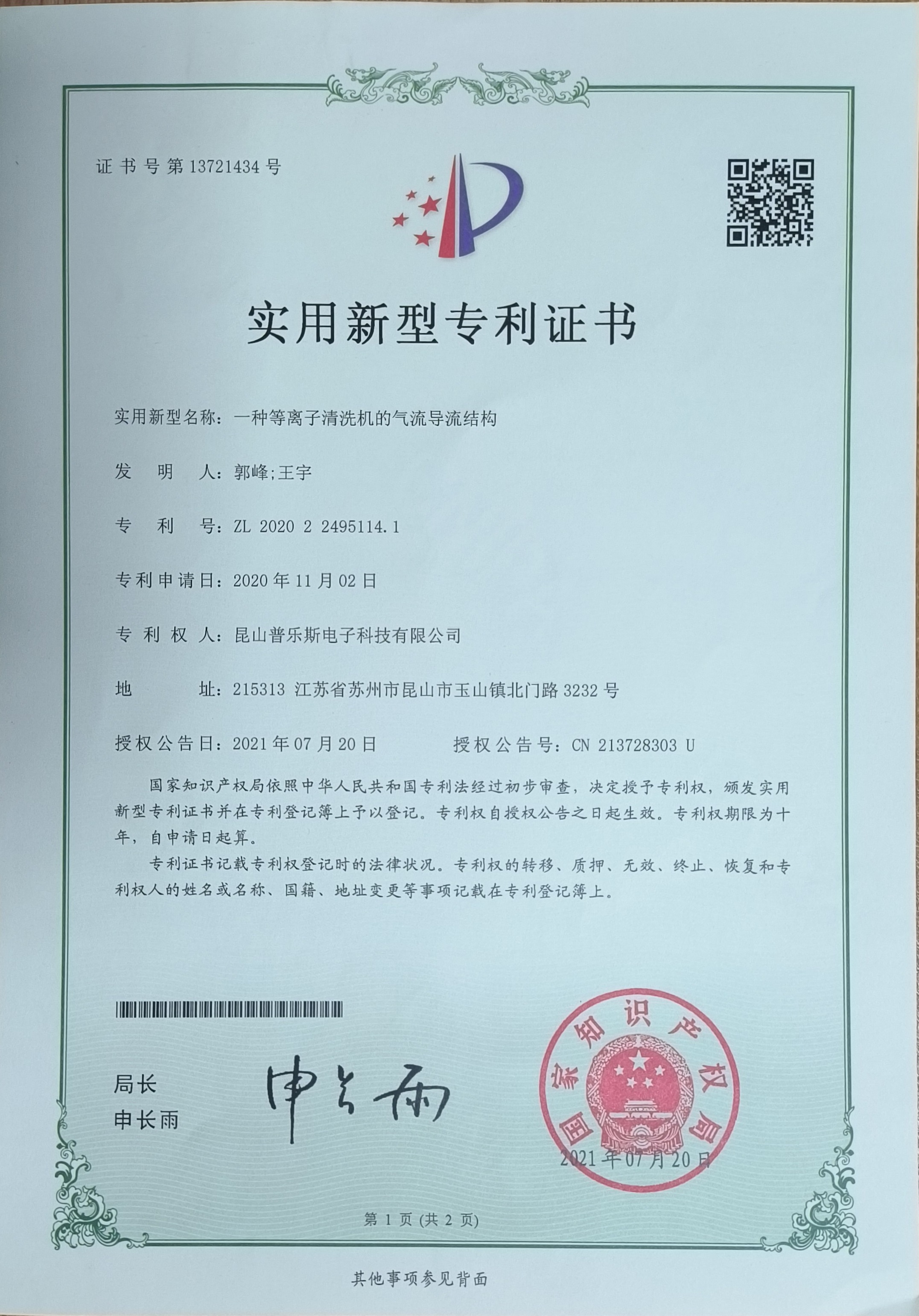 文章導(dǎo)讀:普樂(lè)斯等離子清洗機(jī)實(shí)用新型專(zhuān)利